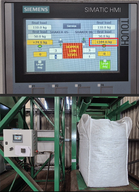 | Step 4: The machine automatically fills the bag to the pre determined target weight calculated above. The machine will bounce, vibrate and shake to help ensure the material is distributed evenly in the bag and force settlement. |