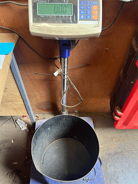 | Step 1: Tare scales with empty 20L calibrated bulk density container. | ![]() |